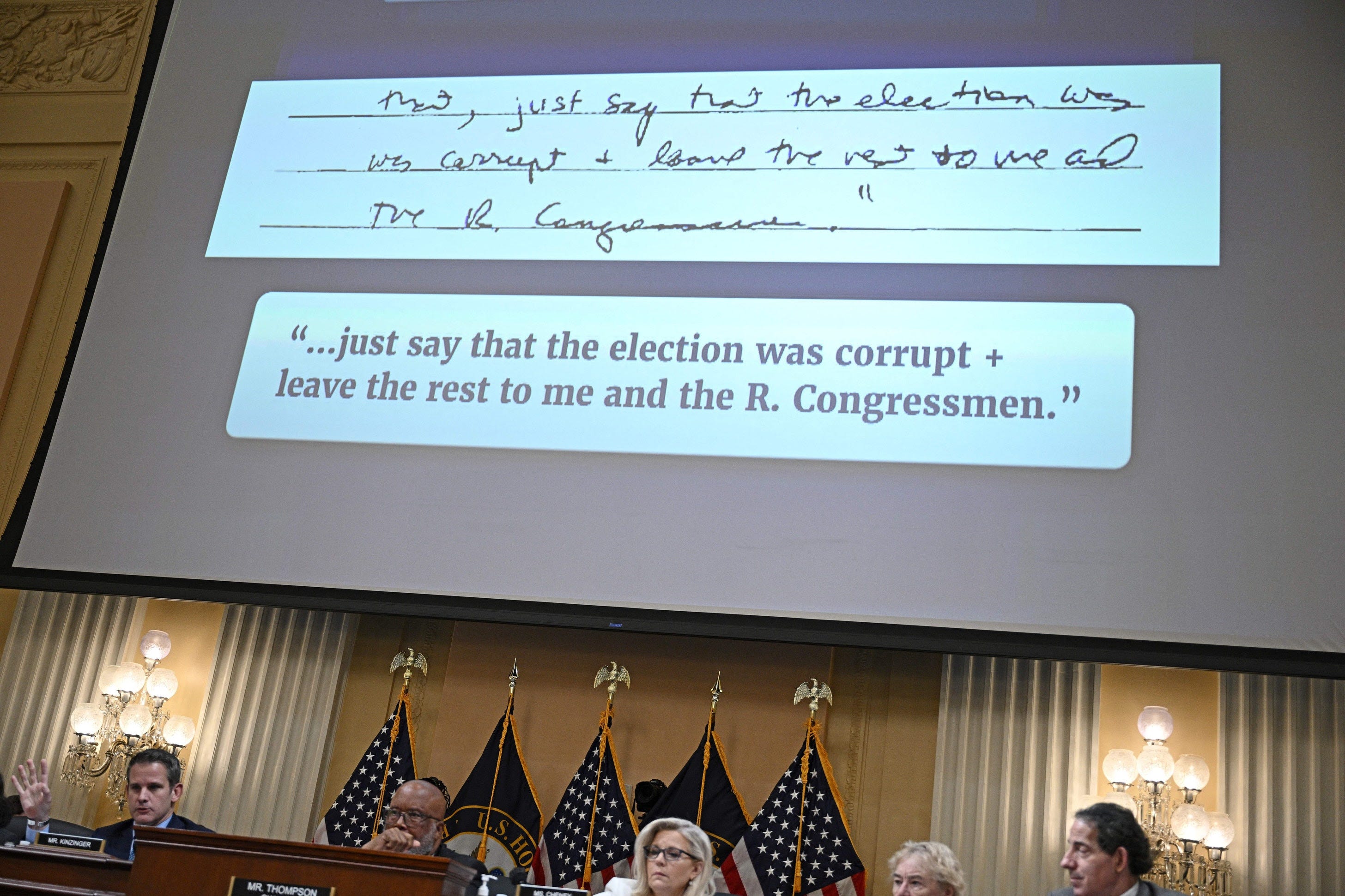 In a phone call on Dec. 27, 2020, Trump pressed Acting Attorney General Jeff Rosen and Acting Deputy Attorney General Rich Donoghue to declare that the election was fraudulent. Rosen told Trump that DOJ couldn’t “snap its fingers and change the outcome of the election.” But according to Donoghue’s testimony to the committee, Trump responded to Rosen by saying, “essentially, ‘That’s not what I’m asking you to do. What I’m just asking you to do is just say it was corrupt and leave the rest to me and the Republican Congressmen.’”