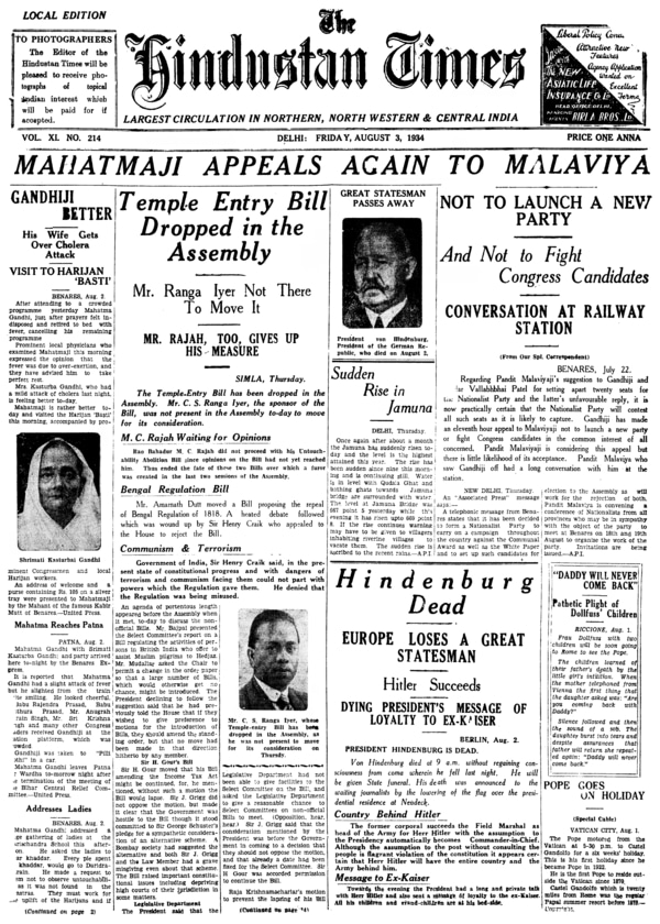 HT This Day: August 3 1934 - Hindenburg Dead (Click to expand) Von Hindenburg died at 9 a.m. without regaining consciousness from coma wherein he fell last night. He will be given State funeral. His death was announced to the waiting journalists by the lowering of the flag over the presidential residence at Neudeck. Read more. |