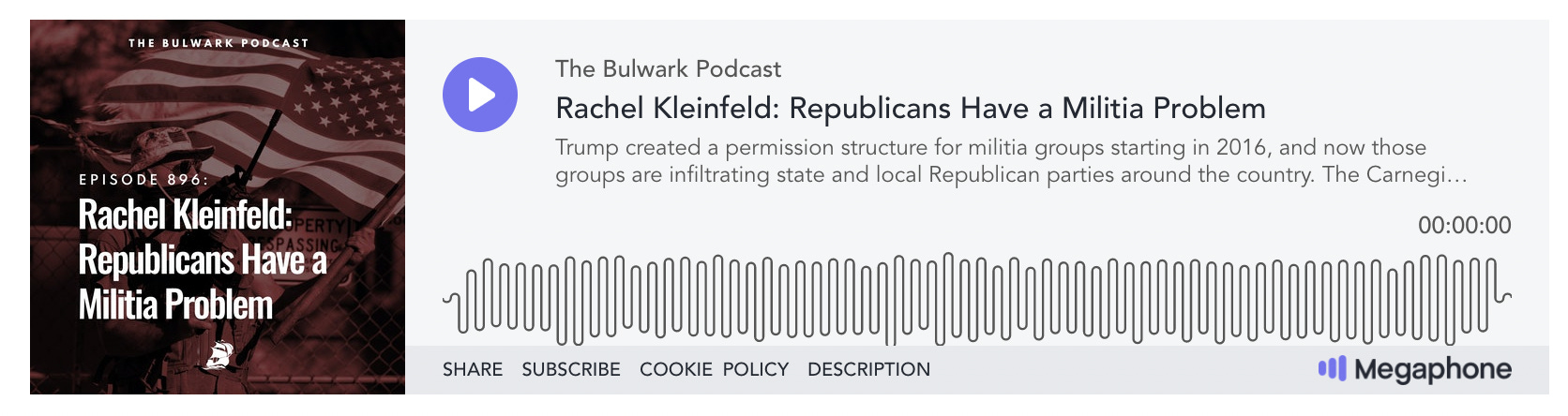 Trump created a permission structure for militia groups starting in 2016, and now those groups are infiltrating state and local Republican parties around the country. The Carnegie Endowment’s Rachel Kleinfeld joins Charlie Sykes to discuss the growing threat from the mainstreaming of political violence.
