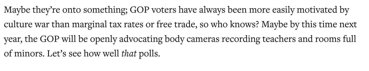 🚨OVERTIME 🚨Tuesday, Tuesday, Tuesday. Get ready for tomorrow’s crazy primaries and stay tuned to The Bulwark for your coverage of how crazy the right is willing to go. If you’d like a preview of Missouri, I’ve got you covered. Don’t sleep on Arizona, either. 7 years? Good. One of the insurrectionists just set a record for a sentence. In part, because he brought a gun. Enjoy prison. Let’s help Eastern Kentucky. After the deadly floods, with 30+ dead and more to come. While we’re talking about the Bluegrass State… This prepper prepared for the end of the world, but still, tragedy found him. The bold case to charge Ethan Crumbley’s parents. A courageous decision. Who predicted this? We did. Last June, I wrote: I’m not sure I’d like to collect my prize here. Meet David Farnsworth… The opponent of Rusty Bowers. He’s…. something. That’s it for me. Tech support questions? Email members@thebulwark.com. Questions for me? Respond to this message. —30— Editorial photos provided by Getty Images. For full credits, please consult the article. You’re on the free list for Overtime. For the full Bulwark+ experience, become a paying subscriber: Follow The Bulwark on: Update your Bulwark email preferences on your personal My Account page. |