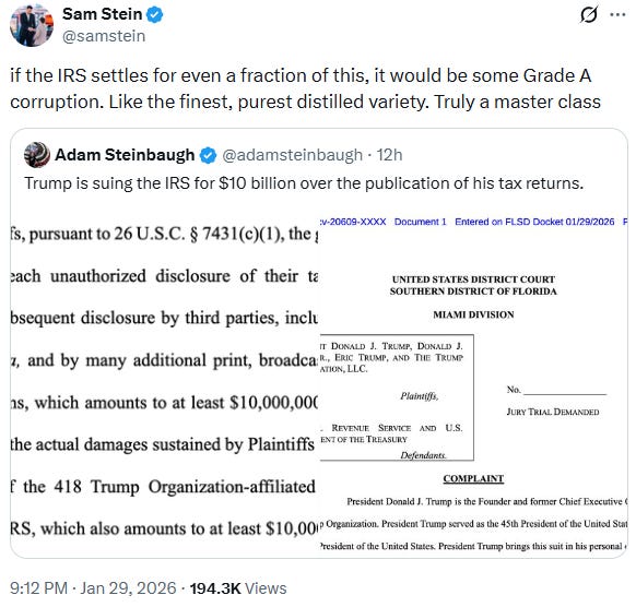 Defang ICE → Save the MidtermsThe fight over ICE isn’t just about civil rights. It’s about free and fair elections, too.It’s been a big 24 hours for Donald Trump. Yesterday, he sued the Treasury Department and IRS for $10 billion over an employee’s leak of his tax returns. Then, late last night, the Justice Department, clearly fulfilling Trump’s wishes, arrested former CNN anchor Don Lemon on charges that he violated federal law when he live streamed a protest at a church in St. Paul. Then, this morning, the president announced his nominee for chairman of the Federal Reserve, Kevin Warsh, in what’s seen as the next step in his efforts to influence the ostensibly independent body. So, there you have it. Our institutions are crumbling. Our First Amendment rights are going wobbly. We’ve brought charges against a journalist covering the protests in Minneapolis while we still don’t know the names of the officers who killed Alex Pretti. And the president is sucking up all the taxpayer money he can. Happy Friday. It’s the Elections, Stupidby William Kristol As I write this morning, there are two processes whose outcomes are unknown: We don’t know how the Senate funding deal is going to play out in the coming weeks, and we don’t know how Donald Trump’s efforts to manipulate and corrupt the 2026 elections are going to play out in the coming months. The two may seem distinct, but they are in fact closely related. On Wednesday, Kash Patel’s FBI seized 2020 voting records from the elections and operations hub in Fulton County, Georgia. This operation was allegedly justified by a law requiring election records to be retained for a certain amount of time. But Fulton County was already retaining those records under a state court–ordered seal. A hearing in less than two weeks’ time was scheduled in state court to arrange for the transfer of records to parties in a lawsuit challenging the 2020 election. So the preservation-of-records rationale for the FBI operation was entirely pretextual. The other statute cited by Patel’s FBI to justify the operation is a prohibition on intimidating voters or producing false votes or false voter registrations. These statutes have criminal penalties. The purpose of the FBI’s action in Georgia was to establish a precedent for further federal intervention in state and local elections to ensure Trump’s version of “election integrity,” and to intimidate state and local officials from resisting such efforts. And of course Trump’s Justice Department has been trying all year to get unprecedented federal access to state voter rolls. They’ve lost court cases in this effort, but are by no means giving up. Thus the already notorious letter from Attorney General Pam Bondi to Minnesota Gov. Tim Walz suggesting there could be some pullback of ICE activities in Minneapolis if the state handed over sensitive voter registration records to the federal government. But it’s not just the FBI and DOJ that would be instruments for the Trump administration’s intervention in elections. Remarkably, Director of National Intelligence Tulsi Gabbard was present for the FBI’s ballot-seizing. As the Wall Street Journal reported, Gabbard has been mobilizing the intelligence community to find support for Trump’s allegations that the 2020 election was stolen with the help of foreign governments. Two officials told the Journal that Gabbard’s effort is designed to shape the midterm elections. On Thursday, White House Press Secretary Karoline Leavitt basically confirmed this: “President Trump and his entire team are committed to ensuring a U.S. election can never, ever be rigged again. Director Gabbard is playing a key lead role in this important effort.” The Office of National Intelligence spokesperson further explained that DNI Gabbard “has a vital role in identifying vulnerabilities in our critical infrastructure and protecting against exploitation” and “to support ensuring the integrity of our elections.” Along those lines, Trump has been reposting various kooky claims of foreign election interference in 2020 to help lay the groundwork for the big push in 2026. Late Wednesday night, he reposted a claim that Italian military satellites had been used to hack into U.S. voting machines to flip votes from Trump to Joe Biden. Trump is laying the predicate for claiming not just massive domestic fraud but foreign interference in our elections, requiring dramatic intervention by the national security apparatus of the federal government. Which brings to the national security agencies with the troops—the Departments of Defense and Homeland Security. In December 2020, Trump was captivated by Sydney Powell’s and Michael Flynn’s plan to use the military or federal law enforcement to seize voting machines in several states. They even presented Trump with draft executive orders they claimed would grant him the authority to do so. Trump’s aides managed to block the plan, despite the president’s repeated expressions of interest. Earlier this month, Trump said that he regretted ordering the National Guard to seize voting machines. But, he explained, he was doubtful the Guard was “sophisticated enough in the ways of crooked Democrats, and the way they cheat, to figure that out.” This time Trump presumably intends to have at his disposal a Pete Hegseth–directed military “sophisticated” enough to ensure he or his chosen successor don’t lose an election. And surely the ever-expanding ICE and Border Patrol forces would be ready and willing to help. They could intimidate likely Democratic voters ahead of time. And they could affect the counting of the ballots. They could do these things in 2026, and of course in 2028, when these agencies will have grown much larger and more powerful unless they are curbed before then. That’s why curtailing the funding and operations of the agencies of DHS is not just a civil liberties issue to deal with 