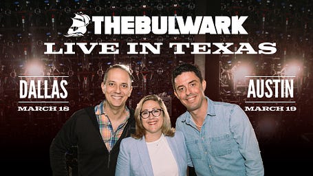 In a follow-up article, the Irish Times reported that the government of Ireland has attempted to intervene in Culleton’s case: “Our Embassy in Washington DC is also engaging directly with the Department of Homeland Security at a senior level in relation to this case,” a spokeswoman said. Read the whole thing. Cheap Shots1 Including, amazingly, a $25,000 donation to a PAC for then-Florida Attorney General Pam Bondi. You’re a free subscriber to The Bulwark—the largest pro-democracy news and analysis bundle on Substack. For unfettered access to all our newsletters and to access ad-free and member-only shows, become a paying subscriber.We’re going to send you a lot of content—newsletters and alerts for shows so you can read and watch on your schedule. Don’t care for so much email? You can update your personal email preferences as often as you like. To update the list of newsletters or alerts you received from The Bulwark, click here. Having trouble with something related to your account? Check out our constantly-updated FAQ, which likely has an answer for you. |