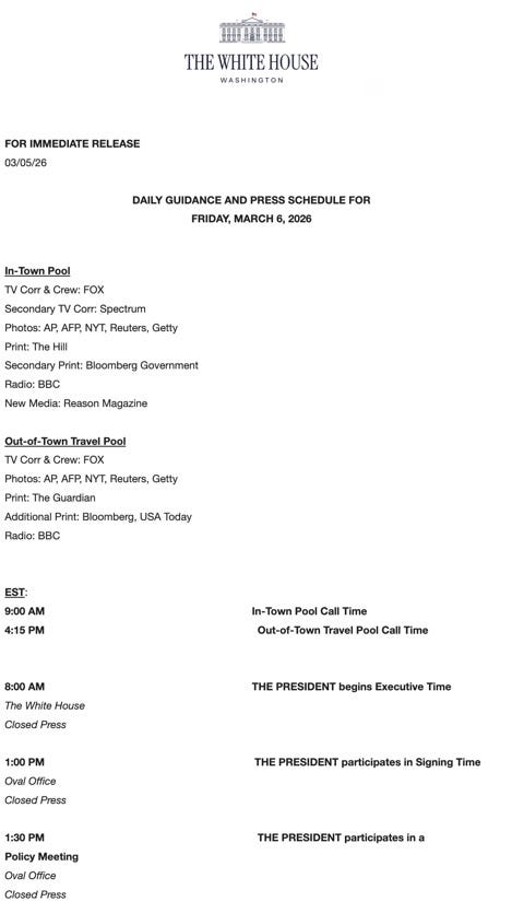 This free Wide World of News newsletter from Mark Halperin includes alerts for 2WAY programs, the daybook, political updates and analysis. If you would like to receive Mark Halperin's separate, daily premium Wide World of News Concierge Coverage newsletter, you can learn how to become a member here: https://www.walkingduck.com/mark “THE MORNING MEETING” DAYBOOKFRIDAY, MARCH 6, 2026By Michael Dailey and Mark Halperin****TODAY* “The Morning Meeting” with Kevin Walling, Larry O’Connor, and me is LIVE at 9am ET. * “The Morning Meeting” airs at 10am ET on SiriusXM’s Megyn Kelly Channel (ch. 111). * Amber Duke joins me for a conversation like no other LIVE at 5pm ET on “2WAY Tonight.” ****Join us this morning LIVE at 9am ET for “The Morning Meeting.” “The Morning Meeting” is LIVE at 9am ET with guest co-hosts Kevin Walling and Larry O’Connor. Join us as we break down the day’s biggest stories and take your questions in real time. Watch LIVE at 9:00am ET this morning by Zoom here. You can watch it on YouTube LIVE here. Please share the links above with your circles and invite them to be a part of “The Morning Meeting.” And please subscribe to our YouTube channel here. “THE MORNING MEETING” IS NOW ON SIRIUSXM“The Morning Meeting” is now available on The Megyn Kelly Channel on SiriusXM (ch. 111) — airing live Monday through Friday from 10–11am ET. ****Amber Duke, senior editor at Daily Caller, joins me LIVE at 5pm ET for a conversation like no other on “2WAY Tonight.” To join LIVE and INTERACTIVE by Zoom, sign up here. You can watch it on YouTube LIVE here. “NEXT UP”On yesterday’s new episode of “Next Up,” I break down the “why” — and the “why now” — behind President Trump’s decision to use military force in Iran. Then Bob Crawford of The Avett Brothers joins me to discuss his biography of John Quincy Adams and why Adams’ post-presidential fight against slavery still resonates today. Finally, Dr. Ray Scalettar joins me to examine the uneasy history of presidential health disclosures — and what Americans were told about President Biden. Please download, subscribe, and share wherever you consume podcasts. Apple: