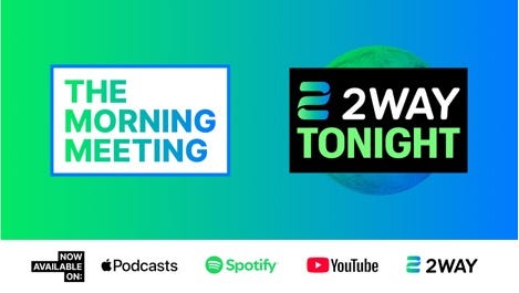YouTube: WE’RE HIRING:2WAY is hiring! Want to help shape a platform that brings people together across differences? Apply or share: https://2way.tv/careers/ 2WAY x FAIRWAY & GREENE COLLECTIONShop the 2WAY x Fairway & Greene collection at 2WAY.TV/FAIRWAY and use promo code: 2WAY20 for 20% off your entire order. Fairway & Greene hits the sweet spot: polished enough for the office, relaxed enough for the course, and built for the New Yorker who moves effortlessly between both. Use promo code: 2WAY20 to save 20% → HERE. PLU X TMM | CAVES QUARTER ZIP PULLOVER SUBSCRIBE TO PODCASTS LIKE NO OTHER“The Morning Meeting” and “2WAY Tonight” are now available as audio podcasts on Apple, Spotify, and all major platforms. Be part of the growing 2WAY community—invite your friends and family to listen, download, subscribe, and share! “The Morning Meeting” Apple: