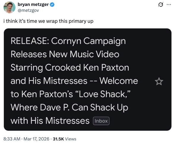 As chair of House Oversight, Comer has richly earned his reputation for working tirelessly to uncover supposed self-dealing in the “Biden crime family” while somehow managing to avoid seeing the Trump family’s nonstop parade of open corruption. So it’s appropriate that he seems to have been dragged kicking and screaming to have to send this subpoena at all. The deposition will take place—if Bondi shows up—on April 14. ALL THIS MONEY, NO GOOD WAY TO SPEND IT: More and more people are wondering: What on earth is AIPAC up to? The American Israel Public Affairs Committee and its associated PACs are working very hard to boost pro-Israel candidates in primaries on both sides of the aisle, typically by spending heavily to attack whomever they see as the pro-Israel candidate’s most viable opponent. Sometimes, however, these ads are having the opposite effect in Democratic primaries this year. It goes like this: AIPAC, hoping to prop up pro-Israel candidate A, spends tons of money attacking mildly anti-Israel candidate B. (AIPAC, seeming to know its name is mud in some of these races, uses shell PACs and focuses on issues other than Israel in an effort to keep its prints off.) Candidate B is harmed by the attack—but so is Candidate A, particularly once voters get wind of the fact that AIPAC is getting involved on their behalf. The result: sudden, unexpected victory for anti-AIPAC, anti-Israel insurgent candidate C. This is exactly what happened last month in New Jersey’s 11th congressional district, where AIPAC spending hammered Democrat Tom Malinowski—only for the race to go to his far more anti-Israel opponent, Analilia Mejia. (Malinowski wrote about the experience for The Bulwark here.) And last night in Illinois’s 9th District, it nearly happened again. In the Democratic primary, Evanston Mayor Daniel Biss—who faced a barrage of negative AIPAC ads—won the primary with 29 percent of the vote; progressive insurgent Kat Abughazaleh came in second with 26 percent. AIPAC’s preferred candidate, state Sen. Laura Fine, finished third. Cheap Shots1 After people got mad at him in 2022 for associating with Fuentes, Kent denounced the podcaster. Then, after Fuentes’s fans got mad at him, he kinda-sorta walked it back on another young groyper’s podcast. You won’t catch anybody here saying Kent displayed incredible political instincts in 2022. 2 Yesterday, a Washington Post report on the vibe shift among the right-wing youth of D.C. contained this interesting quote: “What is cool now is being brave enough to critique the administration for not fulfilling their campaign promises.” You’re a free subscriber to The Bulwark—the largest pro-democracy news and analysis bundle on Substack. For unfettered access to all our newsletters and to access ad-free and member-only shows, become a paying subscriber.We’re going to send you a lot of content—newsletters and alerts for shows so you can read and watch on your schedule. Don’t care for so much email? You can update your personal email preferences as often as you like. To update the list of newsletters or alerts you received from The Bulwark, click here. Having trouble with something related to your account? Check out our constantly-updated FAQ, which likely has an answer for you. |